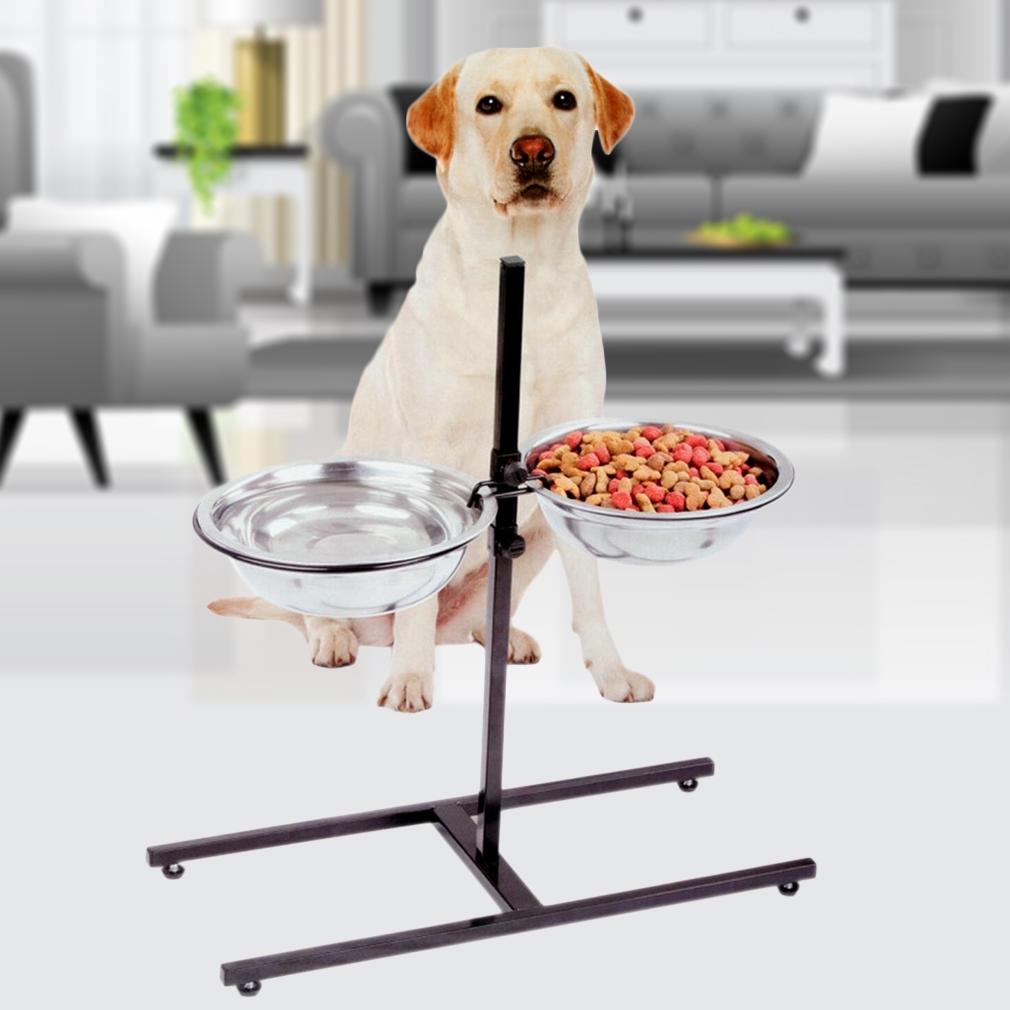 Adjustable Metal Pet Dog Feeder Bowls Elevated Stainless Steel Double Bowl Dish