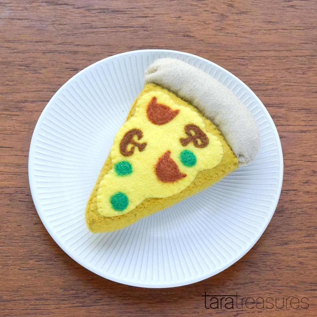 Each wool-felted pizza has a pocket at the back, where the catnip can be refilled when the smell wears down.