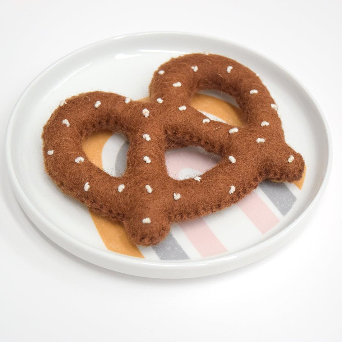 Each wool-felted pretzel has a pocket at the back, where the catnip can be refilled when the smell wears down.