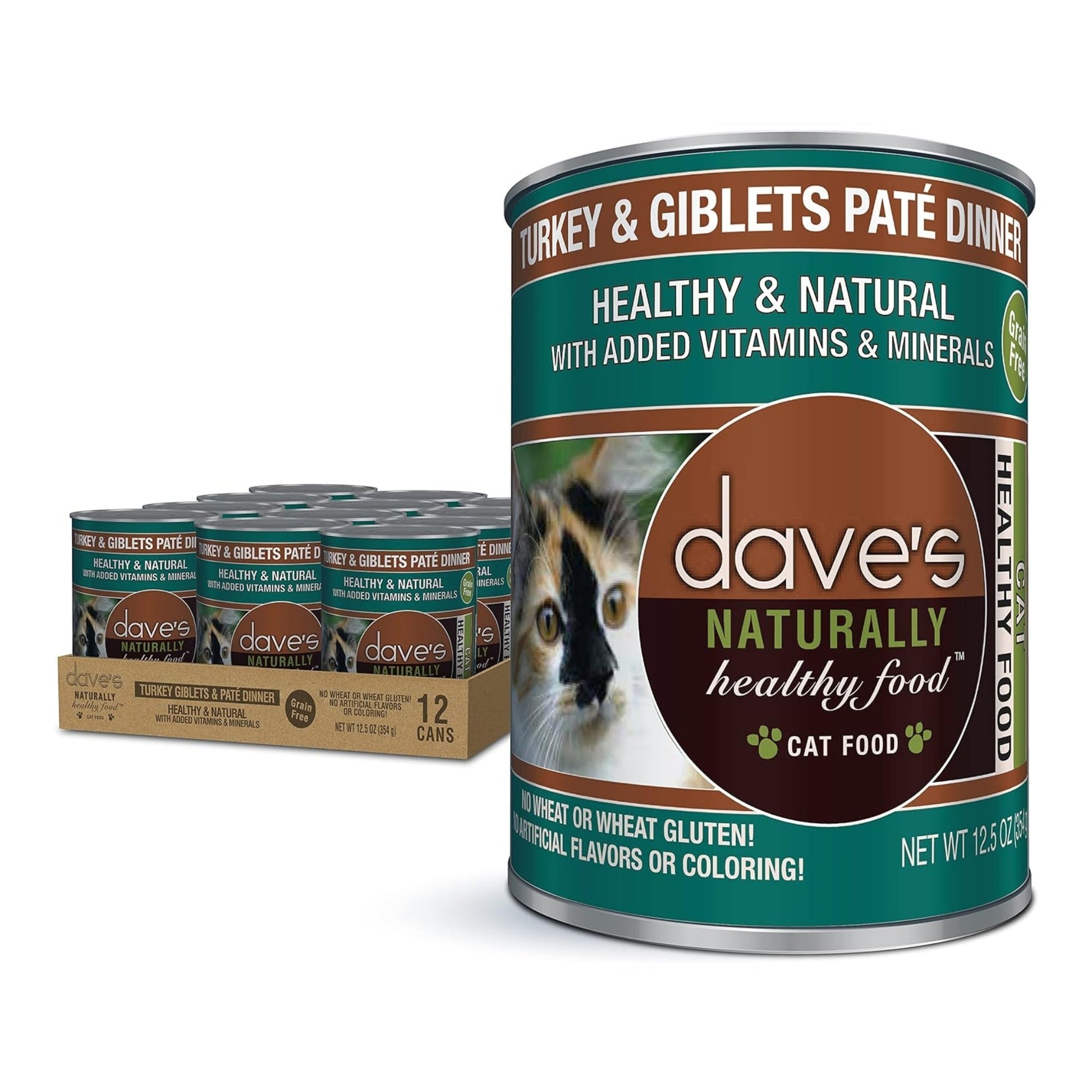 Dave's Naturally Healthy Cat Food; Turkey and Giblets Pate Dinner 13.2oz. (Case Of 12)
