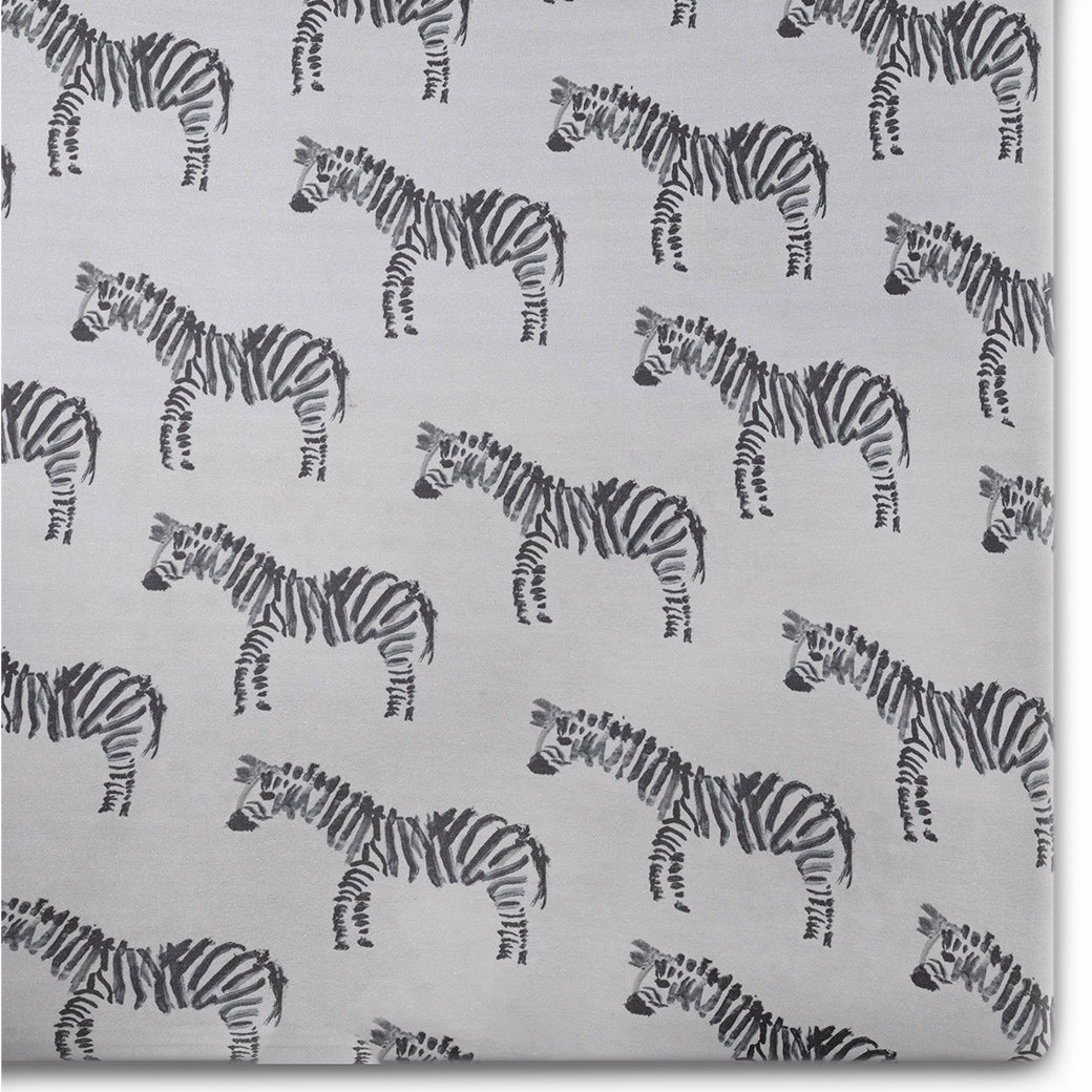 Oilo's Zebra Jersey Crib Sheet is designed with love for your little one's comfort. Its design features a soft gray background with black zebras pattern adding a dash of imaginative playfulness to your baby's nursery!