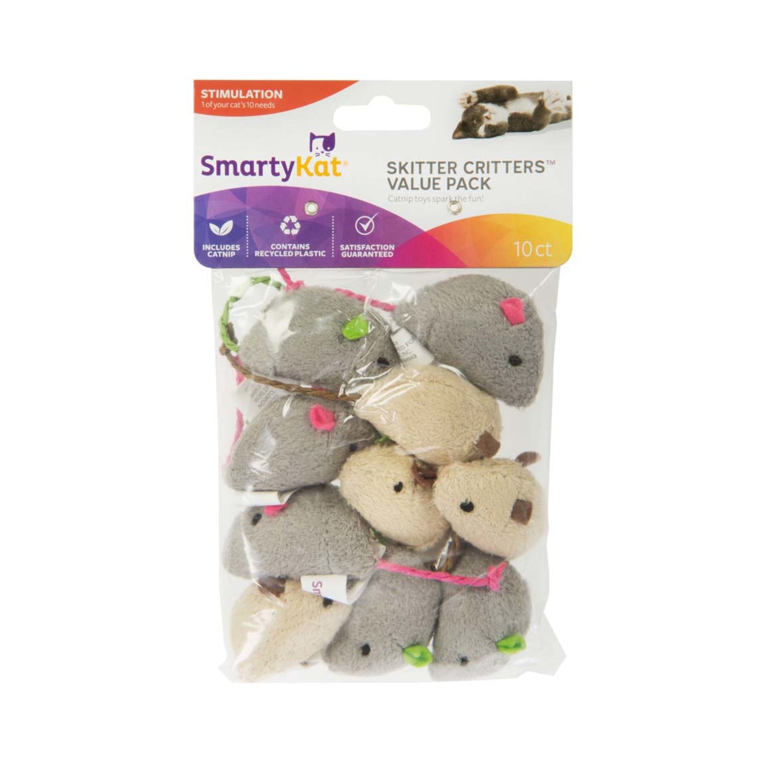 SmartyKat Skitter Critters Mice Catnip Toy Grey; Tan 10 Count Value Pack