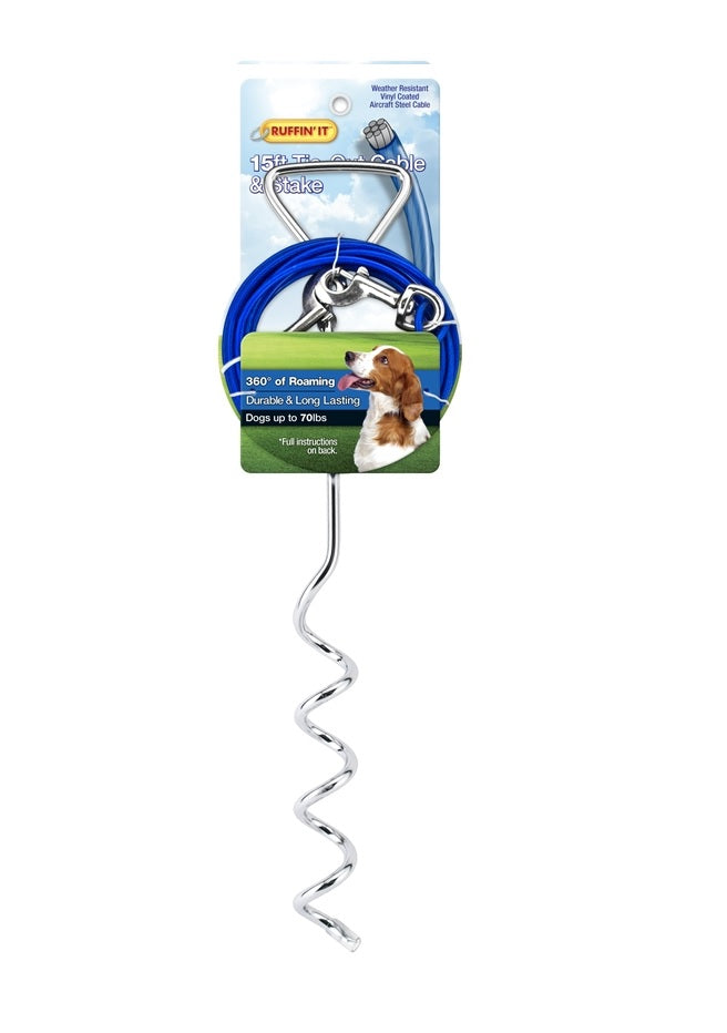 Westminster Pet 7N29515 Ruffin' It Rust-Resistant Tangle-Resistant Tie-Out Cable And Stake, Steel, 15'